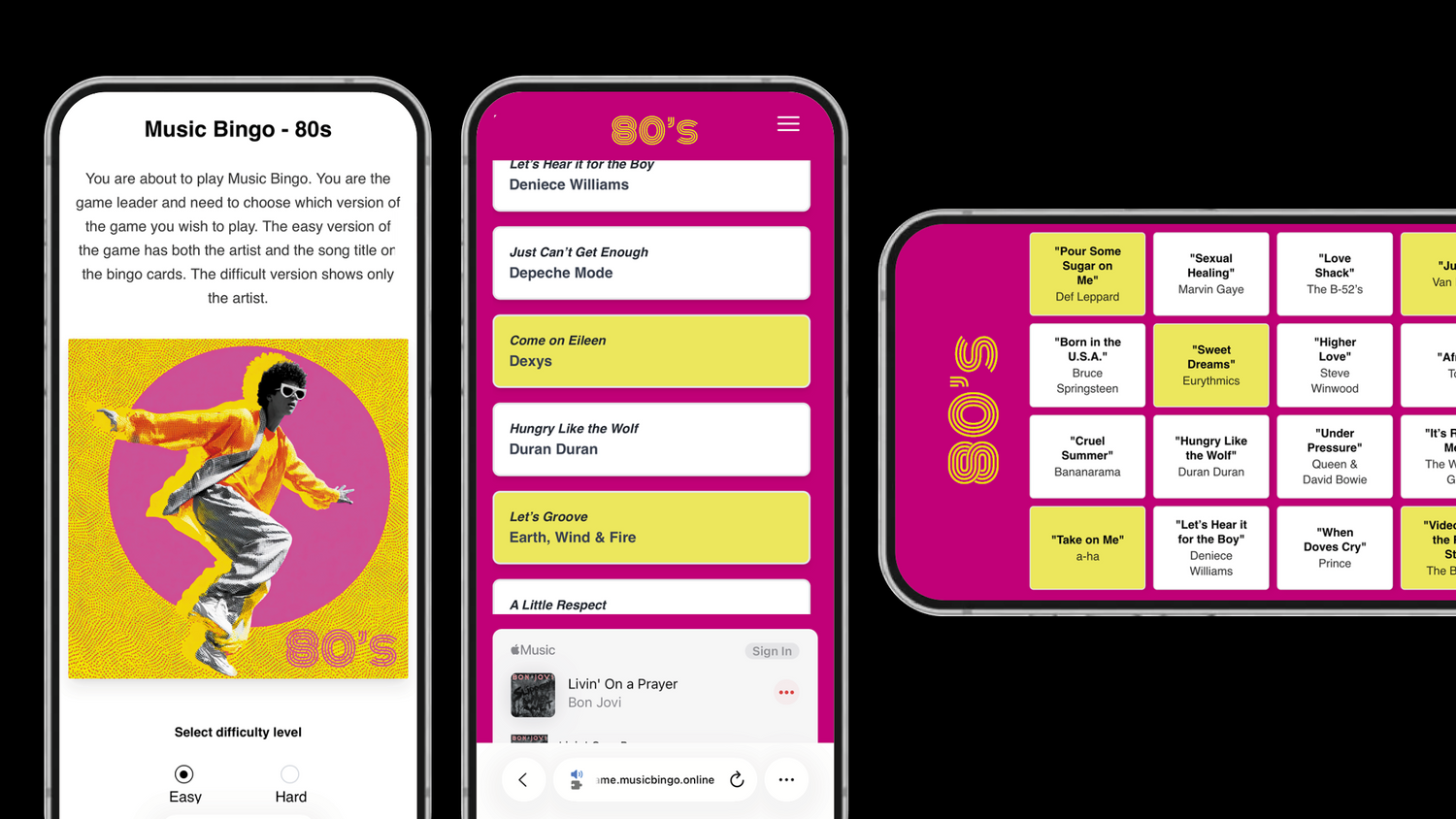 Når musikken spiller, gætter deltagerne hvilket nummer der spilles og markerer sangen direkte ved et tryk på deres spilleplade på deres telefon. Præcis som at lægge en brik på en bingoplade.